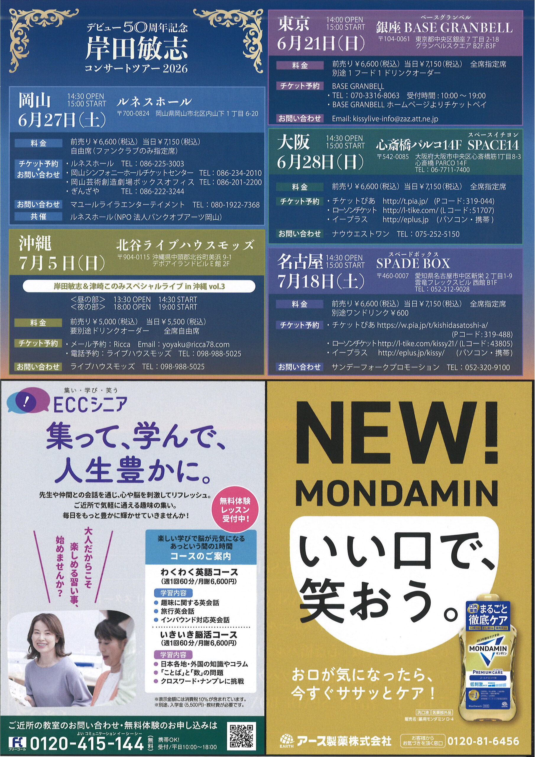 一般 前売 3,000円 一般 当日 3,500円 中学生以下 1,500円 (全席自由席) |